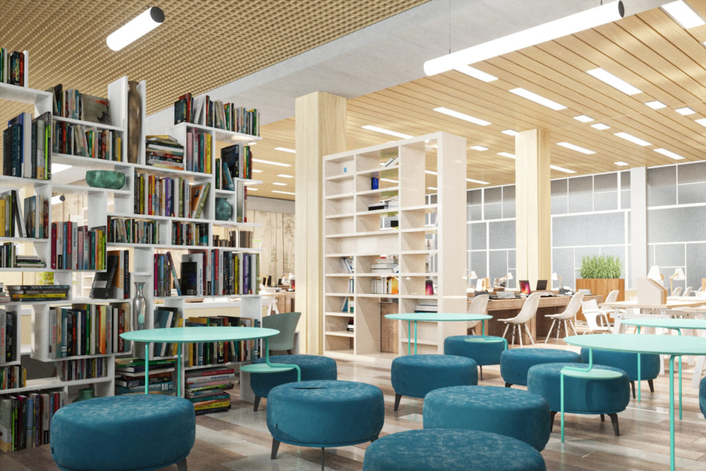 Здание государственной библиотеки на 8000 м.кв. Комплексный проект интерьеров, инженерия и АС, РД
