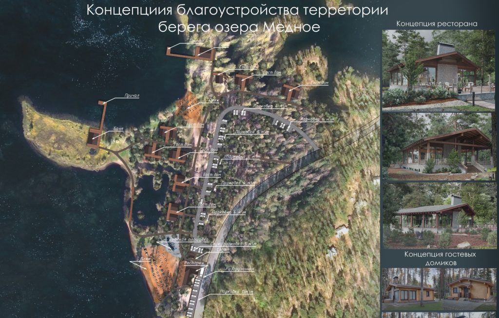 Выполнен проект кэмпинга с административными зданиями, общественными зонами, типовыми номерными домиками и большой зоной стрелкового комплекса. 6Га